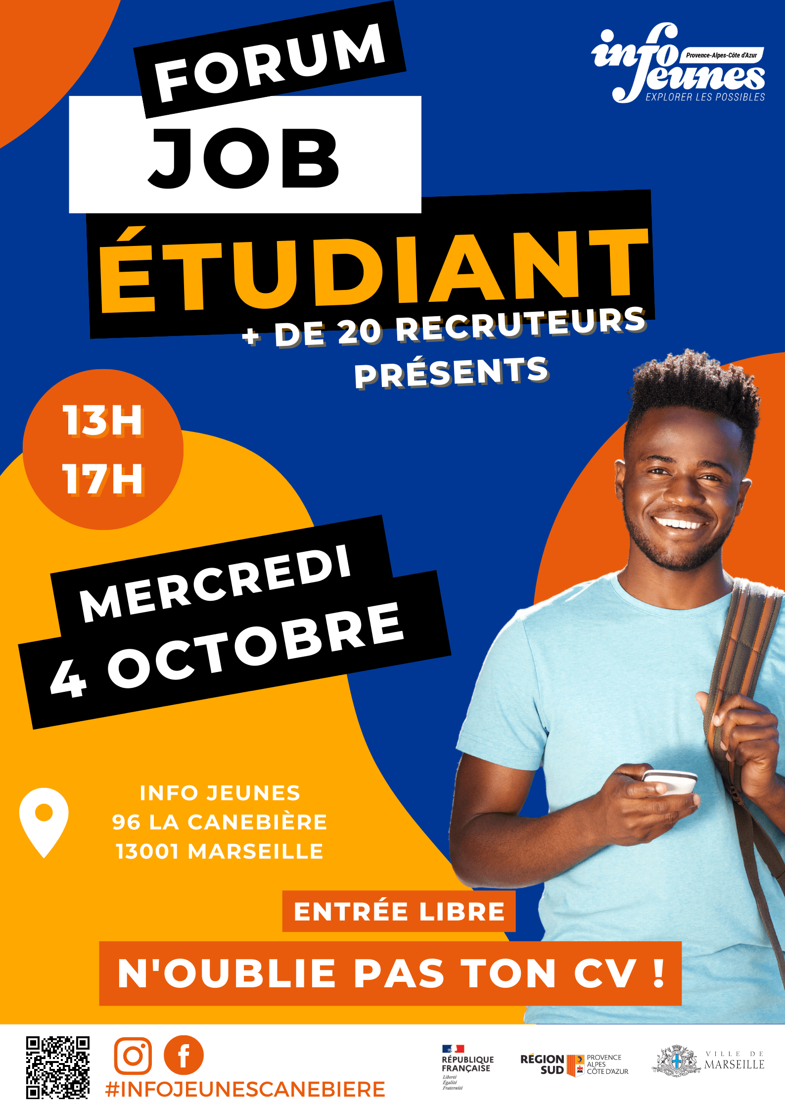 Info Jeunes Canebière – Maison de l’Etudiant organise la 12e édition de son Forum Job étudiant. Le rendez-vous est lancé aux étudiant.es le mercredi 4 octobre de 13h à 17h au 96 la Canebière, Marseille.