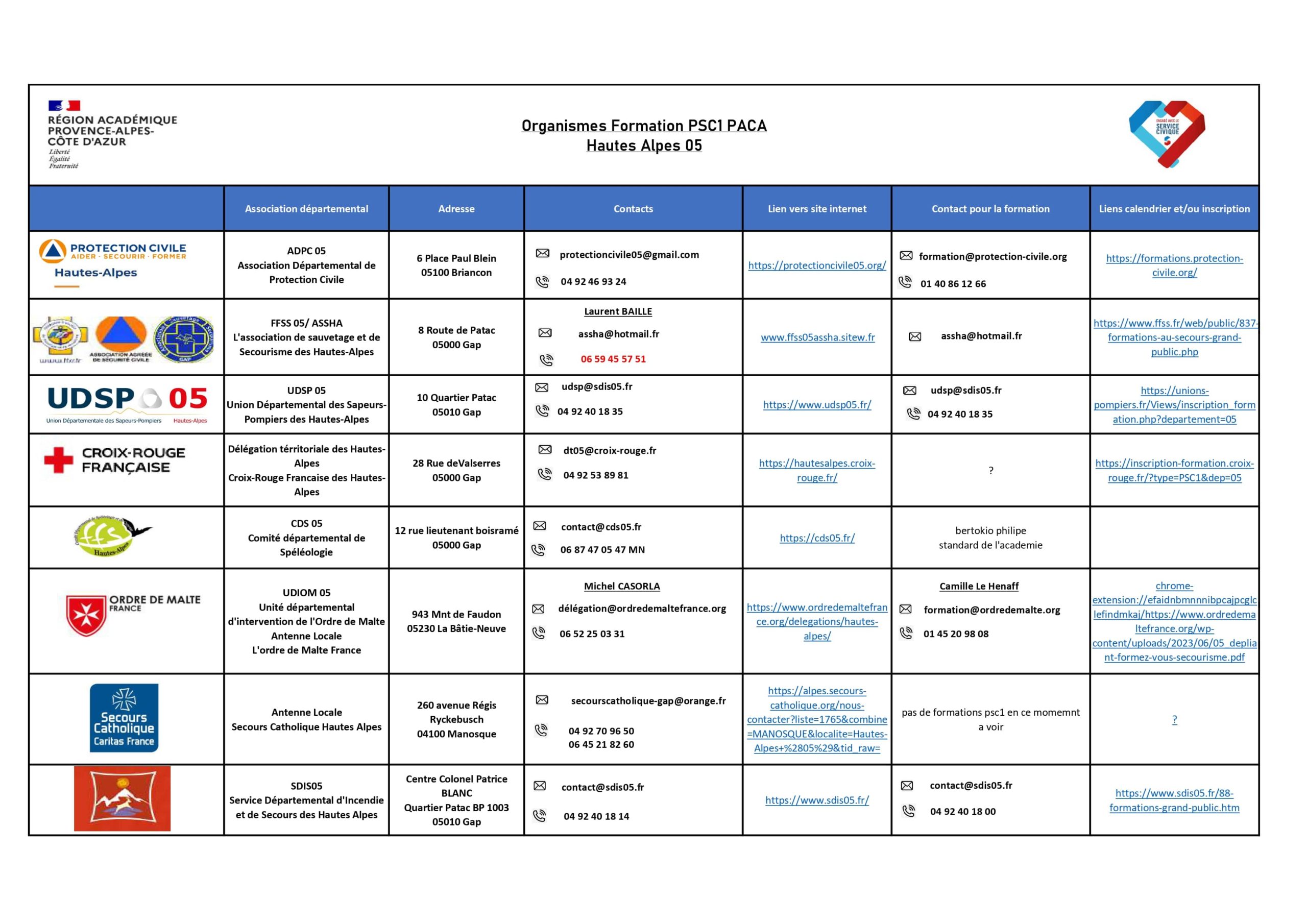 3 – Il est très fortement recommandé de prendre l’attache des structures de formation en début de mission pour connaître les dates de formation et procéder aux inscriptions de manière anticipée, afin de vous assurer que les volontaires ont bien suivi la formation PSC1 avant le terme de leur contrat.